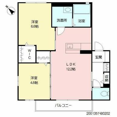 2LDK(LDK12.2帖 洋室6.6帖 洋室4.6帖) |